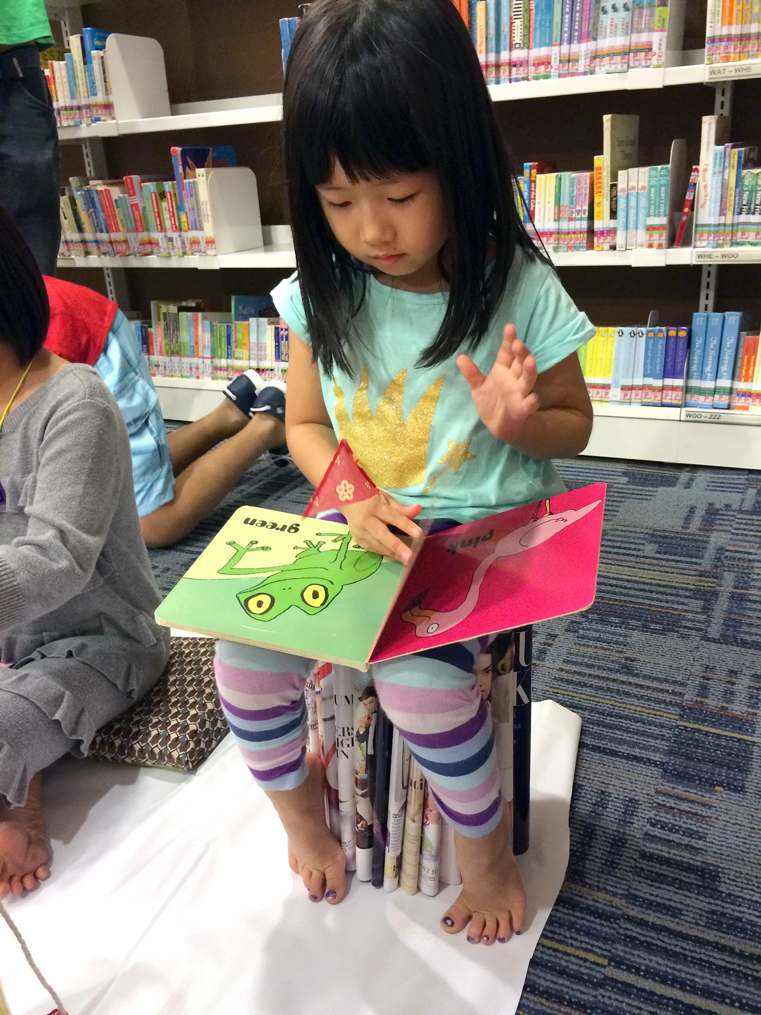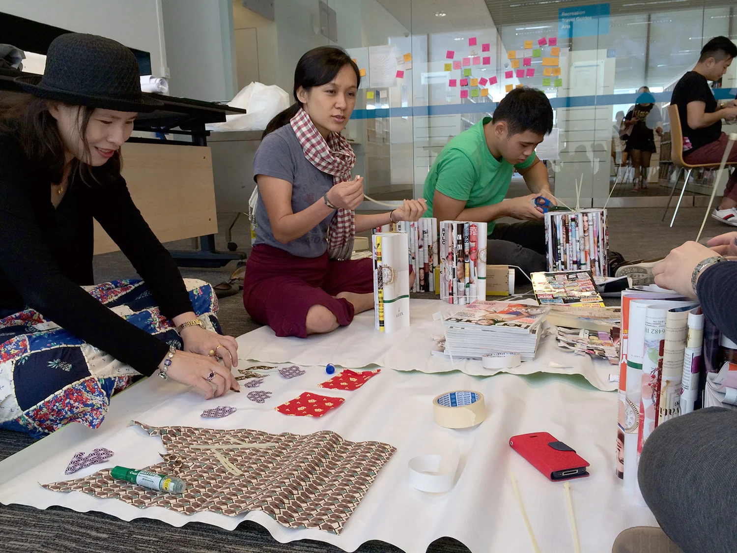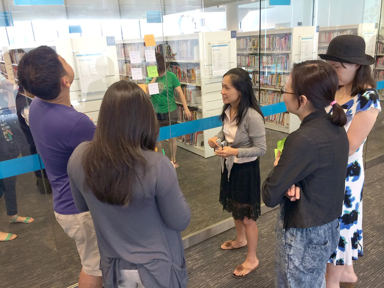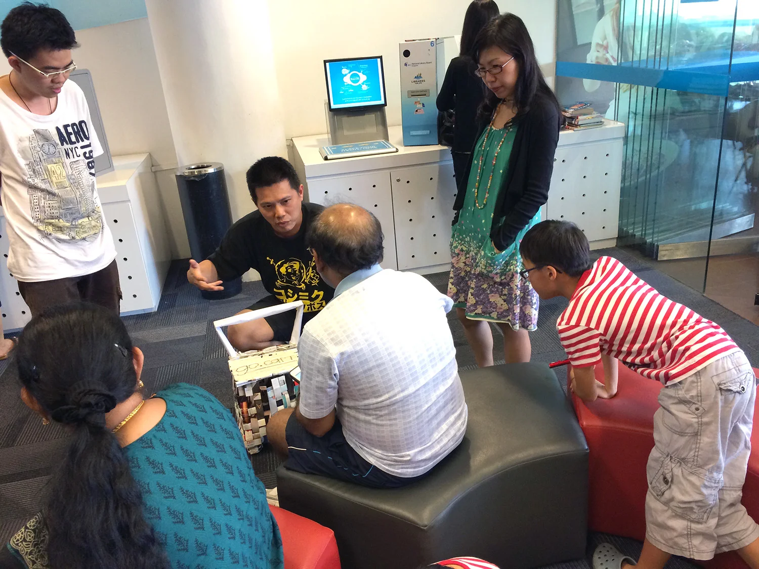 Our participants brought such great energy and enthusiasm to the workshop, and took to each part of the programme with gusto - from on-site fieldwork which involved engaging library users on their needs and experiences, to brainstorming, developing and prototyping design ideas using upcycled materials. And because participatory design is about seeing everyday people as legitimate stakeholders and involving them at every step of the process as far as possible, we 'live' tested the prototypes with the library users at the end of the two days to seek their feedback on how to improve the designs.